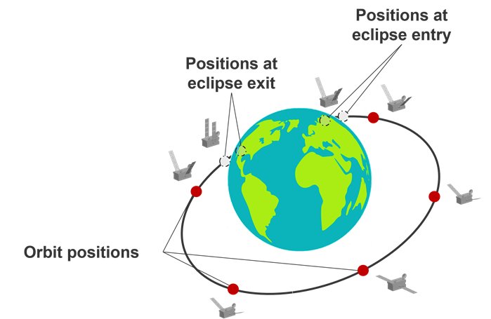 - The presence of an eclipse in the orbit. The solver computes two additional calculation positions for eclipse entry and two more for eclipse exit.