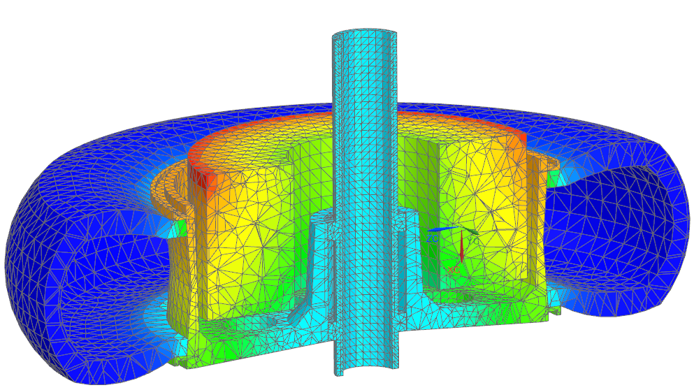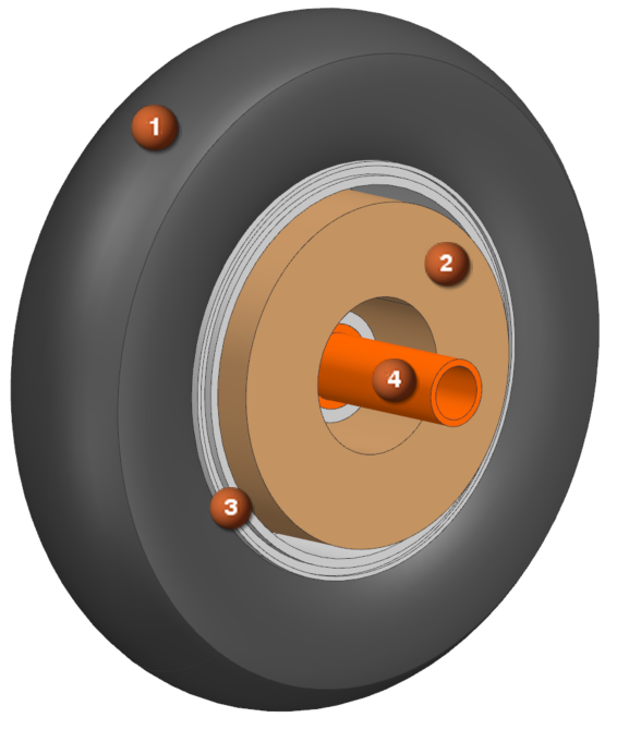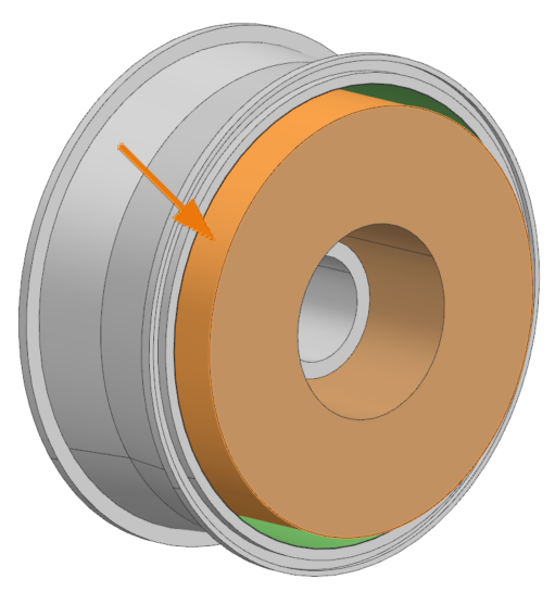 Notice that there is a gap between the brake pad and the wheel. The thermal coupling boundary condition couples the two bodies without the need to create the medium. - In the Magnitude group, from the Type list, select Heat Transfer Coefficient.