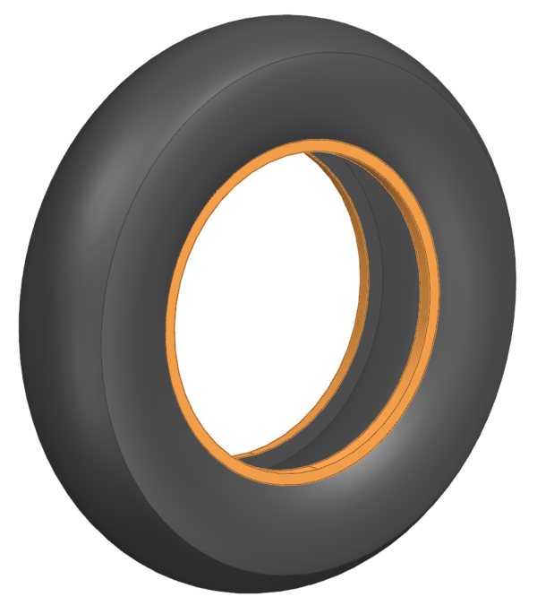 - Expand the Post View→Groups nodes, and double-click the Wheel_tire_TC - Elemental to display the coupled area only for the wheel to tire connection. Notice, that the ratio is equal to one, meaning that the thermal coupling is defined correctly.