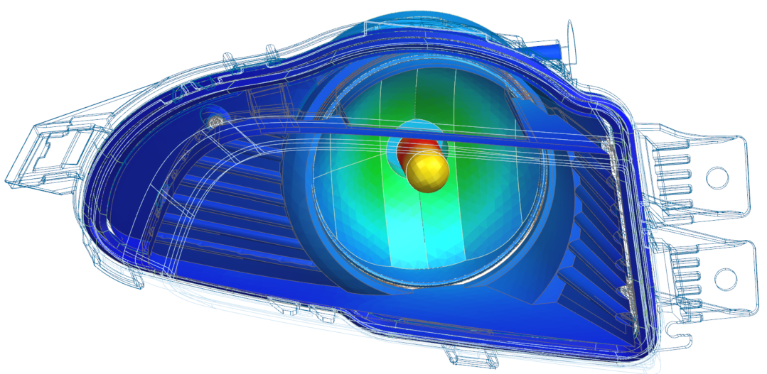- In the Post Processing Navigator, expand Mesh Collectors → Fog_Lamp_fem1.fem → 2D Elements nodes and show the following nodes: Bezel_2D, Reflector_2D, Housing_2D, Bulb_back, and Bulb.