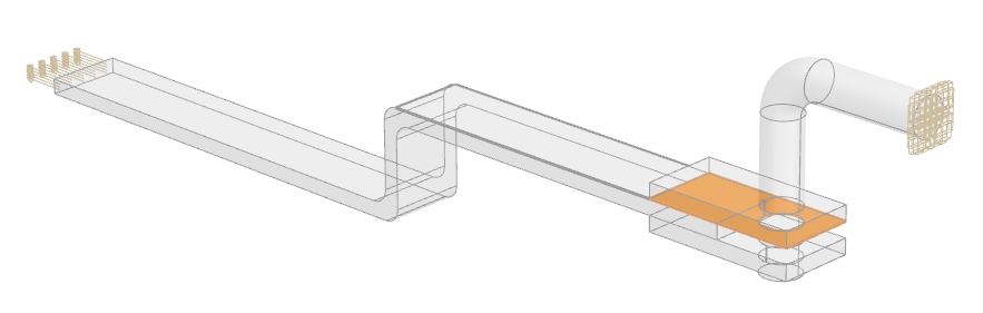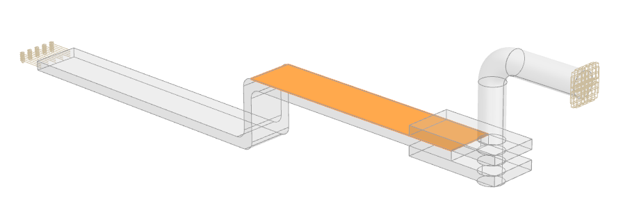 Create an electrical network by applying electrical boundary conditions to both ends of the model using the Joule Heating simulation object. You can specify either a voltage differential with two voltage sources, or a current source associated with a voltage source.