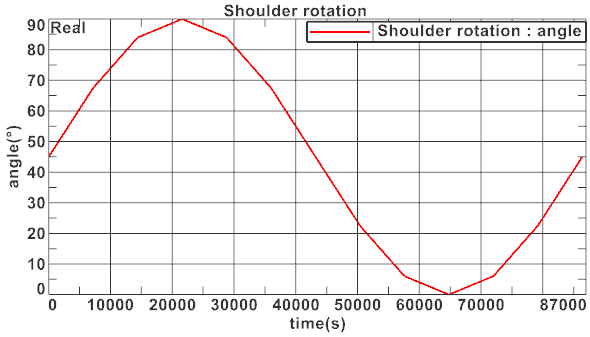 Notice that the shoulder starts at a 45° angle and rotates through its physical range over the course of one day. - Close the Graphics Window.