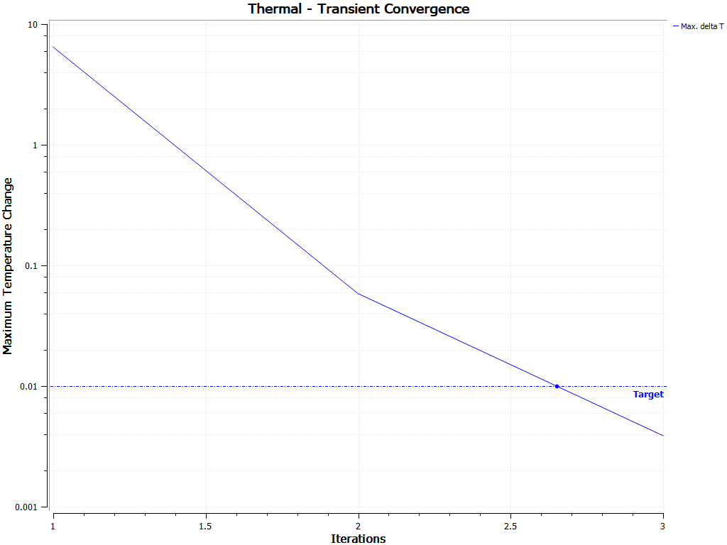 When the temperature change of all elements between two consecutive iterations is below the specified value, the transient solution goes to the next time step.