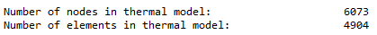 of nodes and elements used in the thermal model: