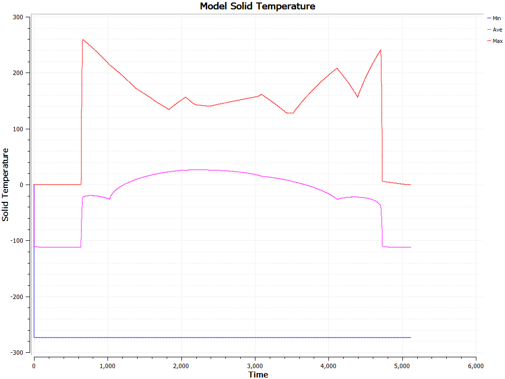 It displays the minimum, average, and maximum values of solid temperatures.
