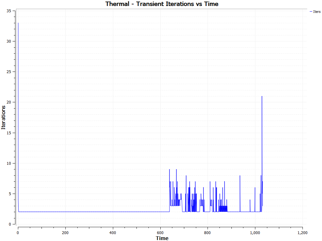 It displays the number of iterations at each time step for the thermal solver to converge. -