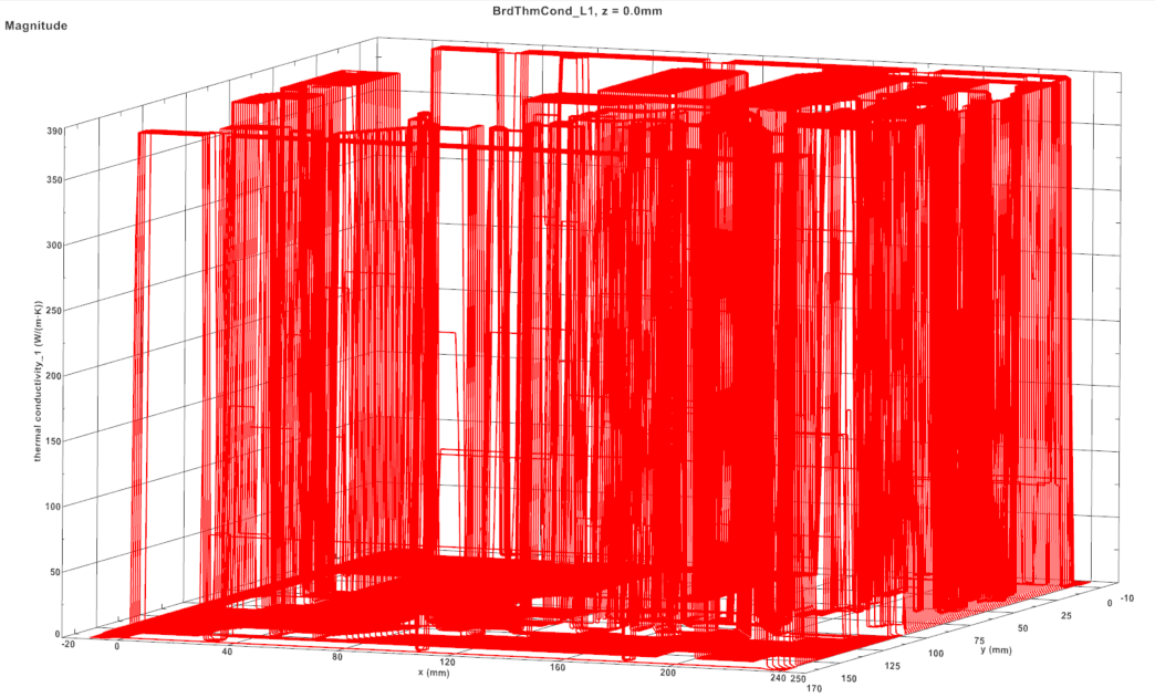 Inspect the Board mesh collector, which has the information about board layers and their orthotropic thermal conductivity computed by PCB Exchange.