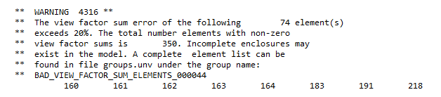 No warnings are displayed regarding the bad view factor sum elements.